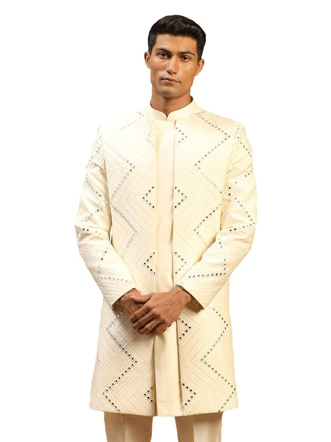 - Fabric: Viscose | Contents: a Mirror work Embellished Viscose Indo Western For Men.